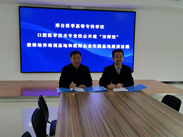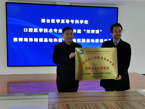 会上,双方就共建口腔医学技术专业教师企业实践基地的制度体系建设、开发培训项目、技术技能平台搭建、实施成果转化等系列问题进行洽谈后达成了一致意见,并签订了基地建设协议。