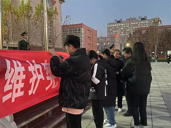 组织160余名学生干部观看了《中国宪法》宣传教育片,深入了解宪法概念、宪法历史,通过生动典型的案例,使大家深刻感受到《宪法》这部国家根本大法,在国家治理中发挥的重要作用。周一升旗仪式期间,开展了宪法知识宣讲活动,并组织参加活动的团学干部在“维护宪法权威,增强法制观念,推进法治建设”条幅上签名,进一步强化了广大青年学子的法治意识和守法理念。