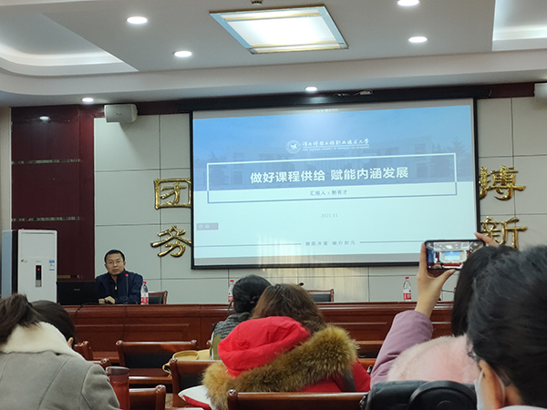 为加强万象城官网精品课程建设,做好2021年省级精品在线开放课程申报验收工作,11月25日下午,学校邀请河北科技工程职业技术大学教务处教研科郭有才科长到校举办专题培训,百余名教师通过线上和线下两种方式参加。