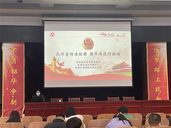 为有效提高学校师生防诈反诈意识,降低校园电信网络诈骗发案率,切实维护校园安全和社会稳定,11月18日下午,学校联合信都公安分局反诈骗中心、钢铁北路派出所开展了“反诈宣传进校园 携手共筑防骗墙”主题教育活动,近200名师生参加。
