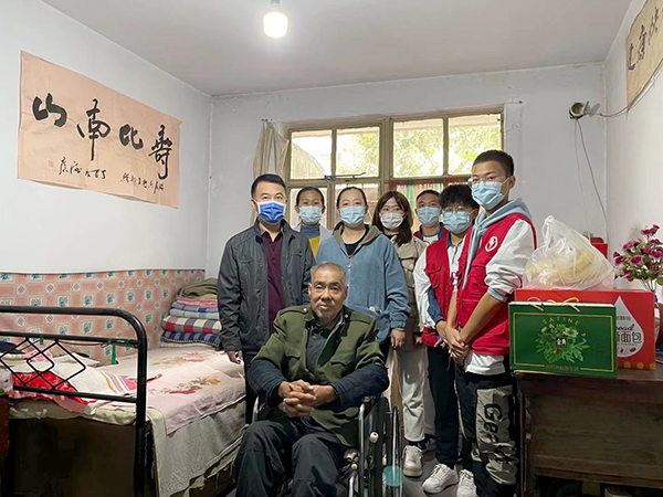 尊老,爱老,敬老是中华民族的传统美德。九九重阳节之际,临床医学系党总支专职副书记张晶娜带领“爱心接力团队”一行8人到郭合林老人家看望,为老人带来牛奶、面包、水果等慰问品,并送上重阳佳节祝福。在老人家,志愿者们打扫房屋、清理杂物、和老人唠家常,陪伴老人度过了一个温馨、美好的重阳节。