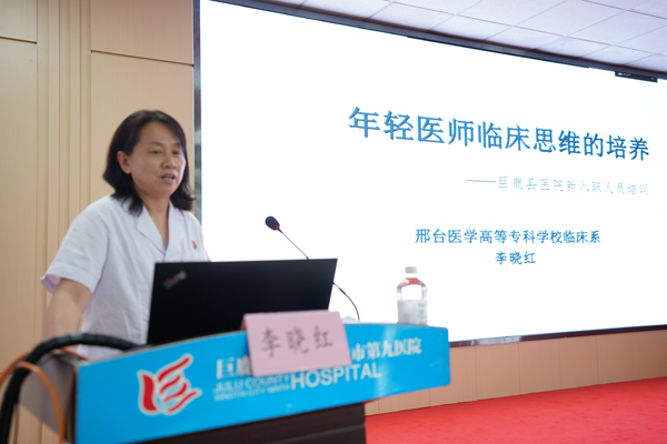 为全面落实中央、省、市委关于新时代文明实践中心建设工作精神, 按照邢台市文明办、邢台市教育局、共青团市委安排部署,万象城官网联合巨鹿县新时代文明实践中心、巨鹿县医院开展卫生健康知识培训。学校临床系教授李晓红应邀为100余名青年医护人员做了题为《年轻医师临床思维的培养》的专题培训。巨鹿县宣传部副部长郅凤霞、县文明办主任王民涛、县医院副院长李亚梅陪同。