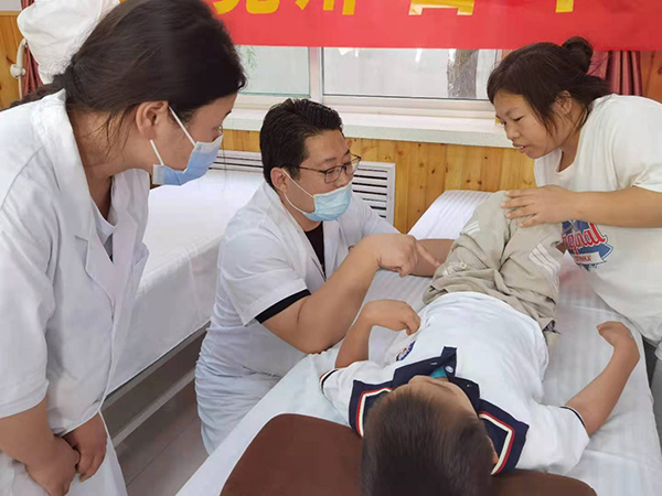 在“我为群众办实事”实践活动中,广大党员干部打党旗、戴党员徽章,亮身份、做贡献,积极发挥专业特长,服务身边人、办好身边事,中医系党总支党员志愿者到邢台市特殊教育学校,利用专业特长为5名学生提供了身体检查、推拿按摩、康复治疗等服务,给家长讲解了正确的保健方法。护理系党总支和药学系党总支党员前往永辉花园社区和医专生活区开展打扫卫生、绿化社区等志愿服务。口腔医学系党总支党员在医专生活区义诊,给居民讲解口腔常见病、多发病的预防控制方法,普及口腔健康常识知识,服务居民50余人次。第一附属医院党委和第二附属医院党委党员专家医疗队到内丘县南赛乡集上赛村和襄都区清风楼社区开展义诊活动,用行动关爱群众,践行医者初心,接受群众健康咨询300余人次,测血压、血糖220余人次,心电图检查70余人次,发放各类健康宣传资料300余份。