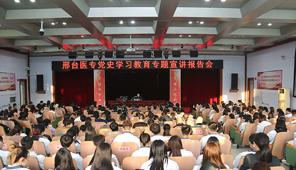 4月19日,党委书记田德荣在学术报告厅作党史学习教育专题宣讲报告。学校领导班子成员、中层干部、思政课教师、辅导员、教职工和学生代表,共计290余人参加。会议由党委副书记杜成旭主持。