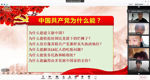 3月18日晚七点,万象城官网第十一期马克思主义者培养工程暨团学干部培训班第二讲《回顾中国共产党带领中国人民从站起来到富起来的光辉历程》专题讲座在线上举行。
