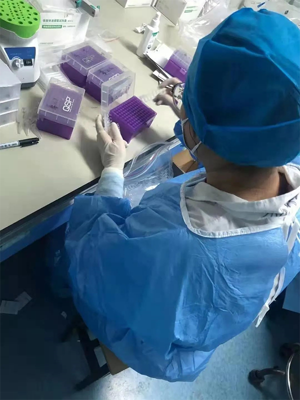 2017级普检1班董博坤的主要工作是配制所有核酸机器所需要的试剂,还有样本上机和查看核酸结果。把阳性情况或者是样本没测出结果的上报给老师。工作量非常繁重,甚至忙的吃不上饭,中午的饭忙到了下午四点才能吃上,老师们也很辛苦,有的时候比我们出来的还要晚。晚上大概十二点左右,所有标本做的差不多了,我们实习生和部分老师也都出来了,一起吃个饭聊个天休息一下,虽然过一会可能又要忙碌起来,但是那段时光对我们来说很开心很充实。