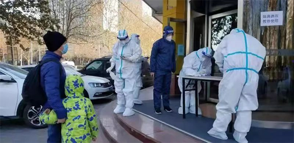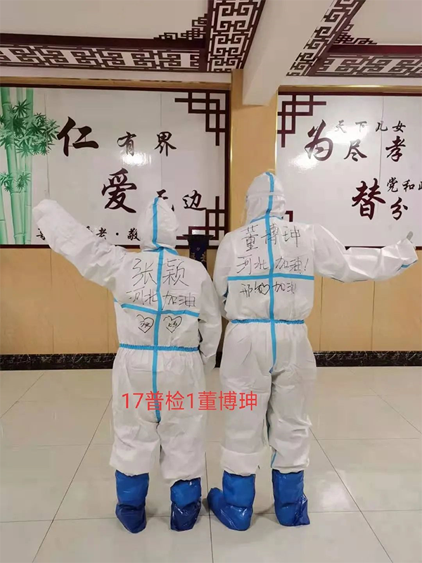 2017级普药班高添一直在霸州市妇幼保健院工作。1月6日晚上10点左右被派往石家庄裕华区进行支援。负责给整个裕华区的居民采集咽拭子,经过三天的奋战,于1月8日返回霸州茗泉酒店进行隔离。