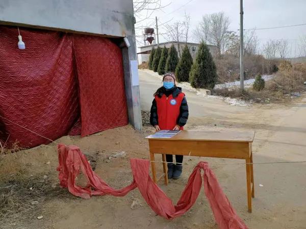 2019级普影3班刘陈芳在河北省石家庄市灵寿县燕川乡西湖社村协助村委开展防疫宣传,劝导村民不信谣、不传谣,每天上午8点至下午6点在村口执勤,登记过往人员,测量体温,对车辆进行消杀处理。