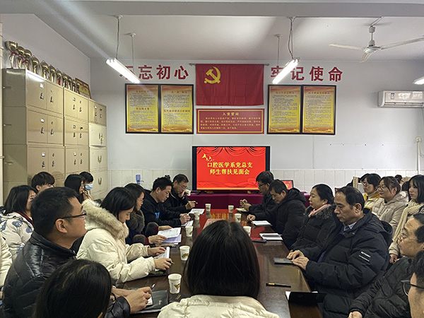 12月29日下午,口腔系在党员活动室召开“三级联系”帮扶活动师生见面会。会议由口腔系党总支书记王振敏主持。