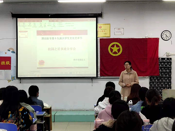 分享会上,同学们学习了努力学习并参与了习近平总书记赴张北县进行村民座谈会议的“勤学追梦之星”——中医系徐亚茹;奉献爱心,志愿支教的“思源支教之星”——药学系罗润花;镞砺括羽、回报社会的“技能之星”——药学系索晟晟等先进事迹,一个个鲜活的事例,一段段身边发生的故事,让参加活动的医专学子备受鼓舞。