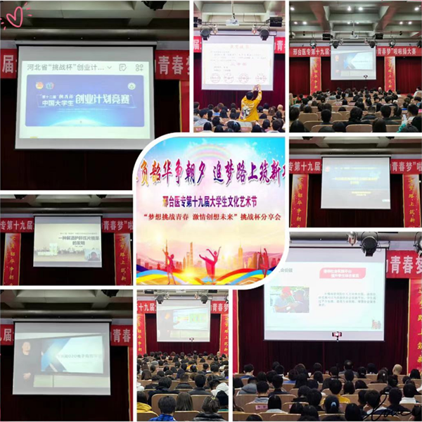 为秉承“崇尚科学、追求真知、勤奋学习、锐意创新”的科创精神,促进青年创新人才成长,深化高校素质教育,11月18日晚上,校团委在学术报告厅举办了以“梦想挑战青春,激情创想未来”为主题的挑战杯分享会,学校团委书记杜庆岩、各系团总支书记,校团委、大学生社团联合会、校学生会以及各系学生骨干代表共300余人参加。