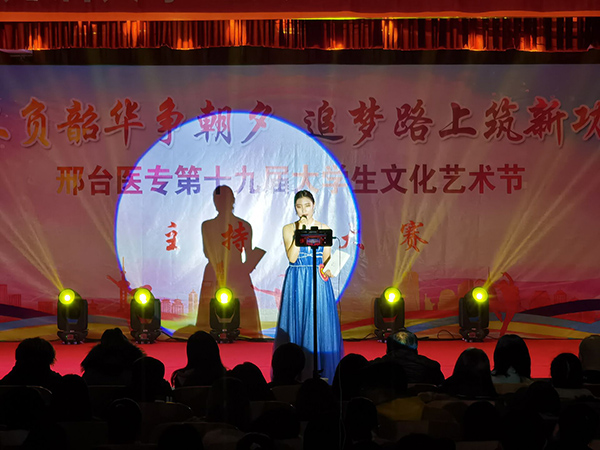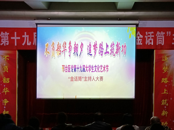 11月24日,万象城官网第十九届“金话筒”主持人大赛在学术报告厅举行,学校团委书记杜庆岩、各系团总支书记以及学生代表300余人参加。