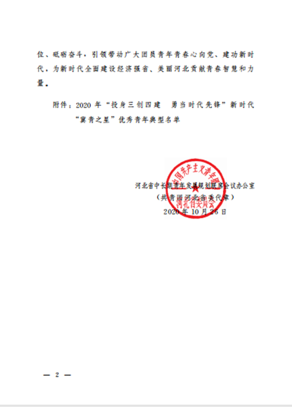 2020年“投身三创四建 勇当时代先锋”新时代“冀青之星”优秀青年典型主题选树活动由共青团河北省委、河北省中长期青年发展规划会议联席办公室联合组织开展。该活动自8月正式启动以来,学校团委认真谋划、广泛动员、精心组织,经系部推荐、评委会评选、主管领导审核,共计17名师生获得参评资格,并最终全部当选。