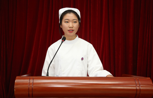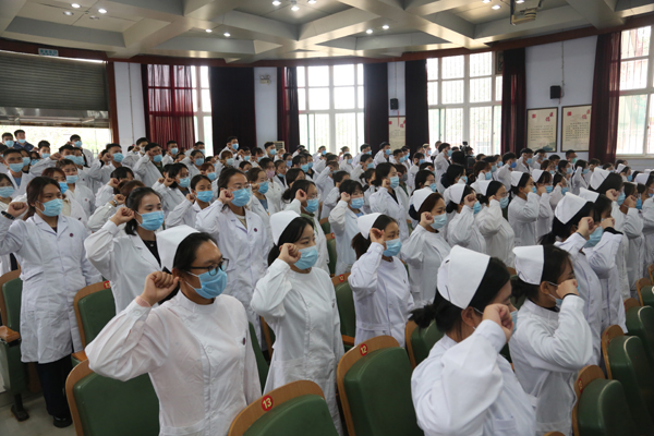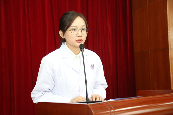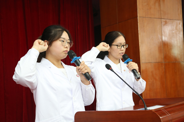 典礼最后,全体新生在护理系王静、中医系刘璐璐老师的带领下诵读医学生誓言。