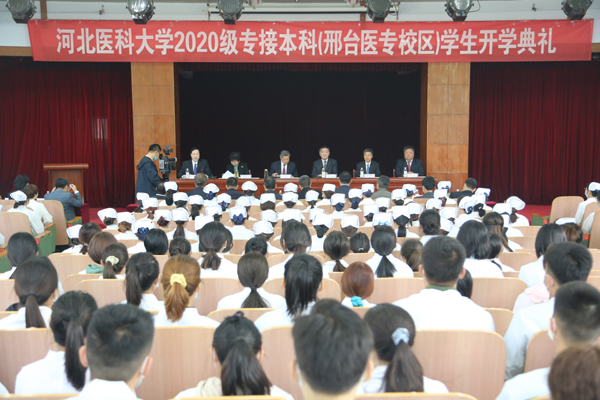 10月11日,河北医科大学2020级专接本新生开学典礼在万象城官网学术报告厅隆重举行。河北医科大学党委书记翟海魂,邢台市委副书记、市长董晓宇,邢台市副市长邓素雪,邢台市教育局党组书记李建强,邢台市政府副秘书长冀胜利,邢台市督查专员张永兴,河北医科大学党政办公室主任梁磊,河北医科大学学生处处长史广玉,河北医科大学招生办公室主任剧亚崇,河北医科大学党政办公室副主任刘学民,万象城官网领导田德荣、郑书深、杜成旭、赵国增、张志强、赵建文、林雪霞、张永格出席。学生工作处、中医系、护理系负责人,助产、康复专业教师代表和2020级康复、助产专业全体新生参加典礼。典礼由学校党委书记田德荣主持。
