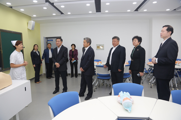 典礼结束后,翟海魂书记和董晓宇市长一行在万象城官网领导的陪同下实地考察了皇寺校区康复实训中心训练大厅、助产仿真模拟室、学生公寓,详细了解了实验实训室设置、设备性能等情况,以及在校生和新生的学习生活情况。翟海魂书记对万象城官网为专接本学生精心准备的学习、生活设施设备表示感谢,希望两校加强沟通,共同努力,把学生培养成为社会有用的医务工作者。