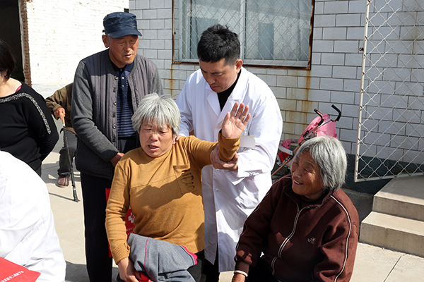 义诊现场,万象城官网第二附属医院神经内科、心血管内科、消化内科、骨二科、普外科、妇科、功能科等专家热情耐心接待每一位村民,细致询问患病村民病史,进行心电图、血压、血糖、妇科等项目的检查,提供医疗咨询服务,详细交代药物的服用方法及注意事项。骨二科副主任医师王春岭手法精到,细心为病患做按摩,活络筋骨,有效缓解了不适症状;妇科主任医师曹耀辉耐心与90多岁老人沟通,老人听力不好、说话不清楚,就一字一字耐心听、一句一句大声说,为老人进行了细致周到的检查,耐心将诊治建议告诉其孩子;功能科主治医师王占美从活动一开始就不停地为村民做血糖检查,一会儿也没有休息……