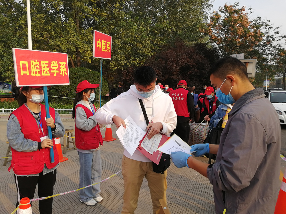 今年的迎新既有创新也颇为温馨。各系针对“00后”新生青睐网络交流的特点,通过微信、QQ等随时发布信息和问候新生,推送了“快来领取你的专属辅导员”“20级萌新们,临床医学系学长带你打卡校园”“以心迎新,助力前行——口腔医学系迎新准备进行时”等信息让新生更快地熟悉环境;因疫情防控要求,今年家长不能陪同新生进入校园,为让学生及家长安心、舒心、放心,各系对新生实行“一对一”全程同行服务,从办理报到手续到宿舍入住,志愿者们细致又贴心的服务让新生及家长备感温暖。在家长休息区的家长说:“刚接到孩子电话,说到学校大门和校内各处报道点都安排了志愿者引领,志愿者帮忙搬行李,现在所有手续都办完了,这么严谨和有序的迎新工作,我把孩子交给你们就放心了。”