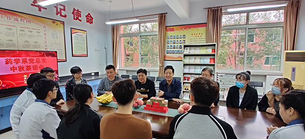 在这金秋送爽,丹桂飘香的季节里,迎来了我们伟大祖国母亲71周年华诞和一年一度中秋佳节。为了减少同学们远离家乡的忧思情怀,使同学们感受到如家般的温暖,10月1日,药学系党总支举办了“庆国庆、迎中秋”茶话会。学校党委副书记杜成旭及药学系领导、辅导员和11名学生代表参加了茶话会。