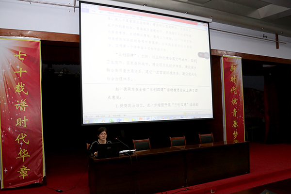 会上,学校党委委员、纪委书记赵建文传达学习了杨勇、张庆文同志在全省教育系统全面从严治党视频会议的讲话精神,组织宣传处处长张永格领学了《王东峰同志关于开展“三创四建”活动的批示》《赵一德、袁桐利同志在省“三创四建”活动推进会议上的讲话》《钱三雄同志在全市招商选资和项目“双进双产”工作第二次例会上的讲话》《钱三雄同志在全市创城工作第二次例会上的讲话》《宋华英同志在向离退休干部通报全市一季度经济运行情况会议上的讲话》。与会人员专心学习,并认真做好笔记。
