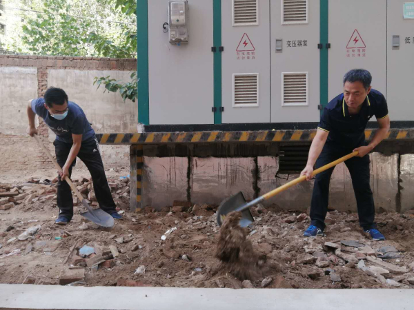 6月3日上午,机关志愿者开展清理垃圾、平整场地活动,学校党委副书记、校长郑书深,党委委员、副校长杜成旭、张志强,党委委员、纪委书记赵建文和机关党员干部共28人参加。