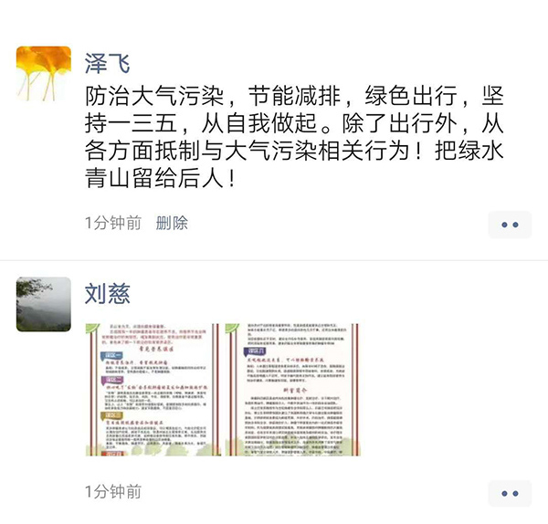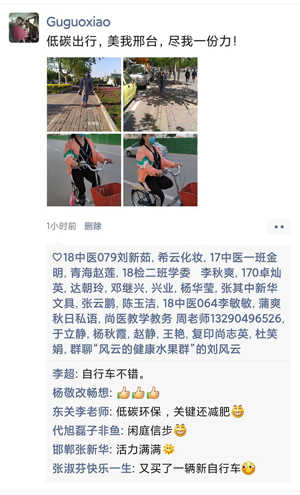 近日,邢台医专的党员干部们纷纷在微信朋友圈里晾晒自己步行、骑车和坐公交等绿色出行的照片,引起朋友圈朋友们的一致称赞。大家互相学习、互相督促,纷纷表示要积极响应学校党委的号召,带头节能减排、坚持135行动、倡导绿色出行,为大气防治攻坚战做出努力,为环保做出自己应有的贡献。