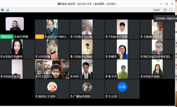 决赛采取线上选拔的方式进行,共有10名优秀选手入围决赛,选手们结合自身抗疫故事或时事新闻进行演讲。他们用慷慨激昂、情深意切、感人至深的演讲,传递着爱心,致敬一线的医护人员,为逆行的勇士祈福,道出了中国人民万众一心、齐渡难关、汇聚能量、战胜病毒的决心。经过一个小时的激烈角逐,口腔医学系2019级口腔5班张子沂同学荣获第一名,临床医学系2019级临床4班肖春雨荣获第二名,临床医学系2019级临床1班何洋荣获第三名。