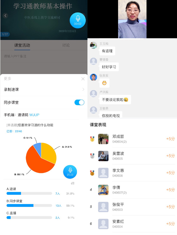 各系部积极组织教师进行网上学习研讨,调整制定授课计划,优化整合教学内容,制作完善线上教学资源,为延期开学开展线上教学新模式做好了充分准备。基础医学部召开教研室主任网络视频专题会议,对开展线上教学准备工作进行经验分享和交流研讨,对在线课程准备工作提出了具体要求,分工明确、团队合作、灵活多样、精心设计,高效完成线上教学。中医系开展全员线上超星学习通平台使用培训,线上模拟建课建班,与老师实时互动,收到良好效果。临床医学系制定了《关于应对疫情开展在线教学的实施方案》,明确说明了课程使用的教学平台,规定了线上授课的内容标准,召开教研室主任电话会,布置教学任务。护理系、药学系、口腔医学系、公共教学部、社会科学部、体育教学部等都通过各种形式组织教师进行了线上培训和交流,学习各种线上教学平台、微信、QQ的操作及使用,具体安排线上教学事宜,积极准备课程教学资源。通过各系部教师的共同努力,为更好地保障新学期各门课程的教学进度、效果、质量和完成好教学任务打下了坚实的基础。