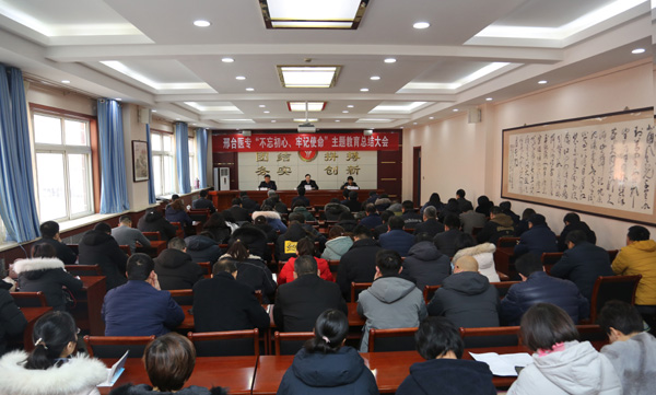 1月13日下午,万象城官网在图书馆北一楼会议室召开“不忘初心、牢记使命”主题教育总结大会,学校党委书记、主题教育领导小组组长田德荣作“不忘初心、牢记使命”主题教育开展情况总结。市委第二巡回指导组组长石富荣,成员武晓辉、杜东跃出席会议。学校领导班子成员以及中层干部,各党总支委员,党支部书记、副书记,正高级职称党员教师代表120余人参加会议。会议由学校党委副书记、校长郑书深主持。
