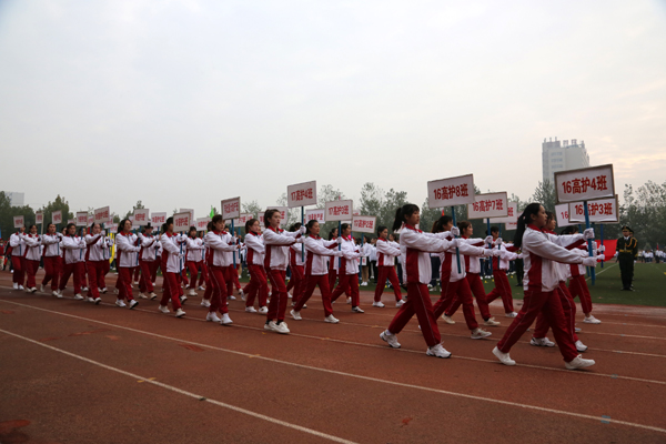伴着雄壮激昂的《运动员进行曲》,国旗方队、校旗方队、彩旗方队、各班级方队、裁判员方阵昂首阔步依次走过主席台。他们着装整齐、精神饱满、步伐矫健,“强健体魄,振兴中华,全面发展,奉献国家!”嘹亮的口号表达了大家对祖国的无限热爱,展示了医专人阳光向上、锐意进取、追求卓越、开拓创新的精神风貌。