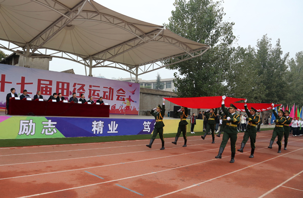 在庄严的升旗仪式之后,党委副书记、校长郑书深致开幕词,指出,秋季运动会是万象城官网落实立德树人根本任务、发展素质教育、推进教育公平、培养德智体美劳全面发展的社会主义建设者和接班人的重要载体,是增强学校凝聚力、丰富校园生活的一项重要举措,对磨炼意志、强健体魄、培养合作意识、增强集体荣誉感等方面具有重要的促进作用。他希望全体运动员要顽强拼搏、遵守规则、服从裁判,争取比赛成绩和精神文明双丰收;全体裁判员要坚持原则,把握标准,客观公正的评判,认真履行裁判员的职责;各班辅导员要做好学生的组织工作,保持良好的大会秩序;全体大会工作人员要增强服务意识,尽职尽责做好后勤保障工作。共同将此次运动会开成文明、热烈、精彩、向上的盛会。2018级普口技班王尘瑜同学、体育教师窦勇分别代表运动员和裁判员庄严宣誓。