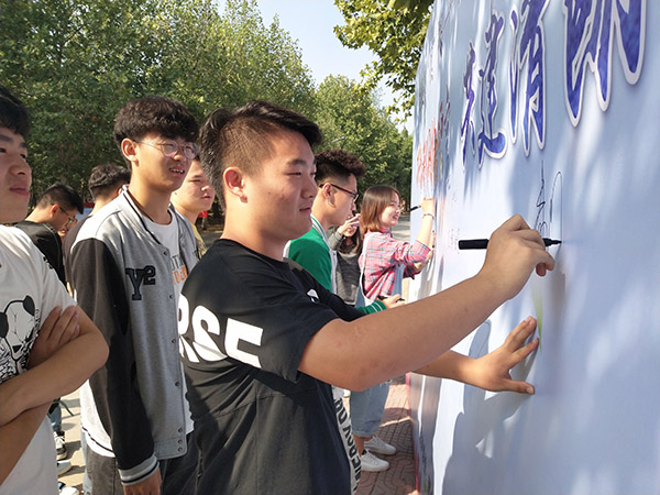 为深入贯彻落实习近平总书记关于网络强国的重要思想,宣传贯彻《网络安全法》及相关配套法规,普及网络安全知识,提升鉴别网络信息真伪技能,营造清朗的校园网络环境,9月25—27日,校团委在天使路举办了“抵制网络谣言 共建晴朗空间”全民大“真”探签名活动,同学们积极在签名板上签下自己的名字。
