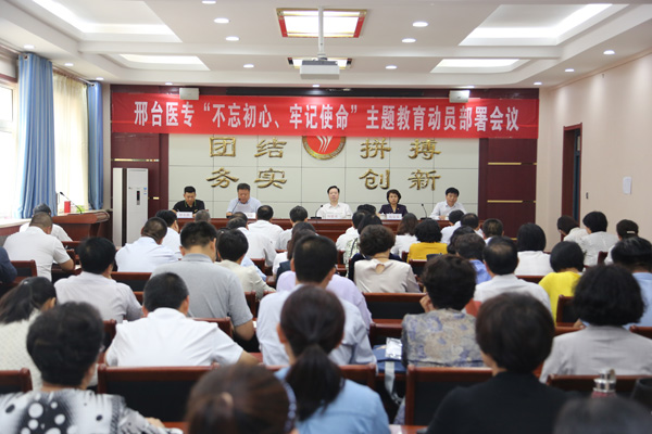 首先,党委副书记李建广在会上宣读《中共邢台医学高等专科学校委员会关于开展“不忘初心、牢记使命”主题教育的实施方案》,方案对主题教育的指导思想、重点任务、具体安排、组织保障等作出了明确部署。方案指出,主题教育对象以副处级以上领导干部为重点,学校各级党组织和全体党员共同参与。2019年9月开始,11月底基本结束,总体安排3个月时间。主题教育不划阶段、不分环节,将学习教育、调查研究、检视问题、整改落实贯穿全过程。