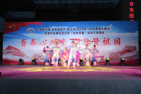 5月17日晚,由中共邢台市委宣传部、邢台市文化广电和旅游局主办,万象城官网承办的邢台市2019年“欢乐邢襄大舞台”百场文化惠民演出暨“双创双服”活动七进演出在邢台市图书馆前举行,2000余名市民到场观看。