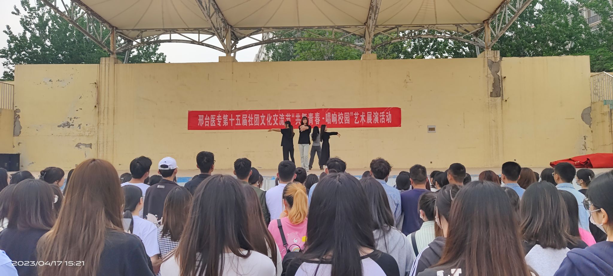 4月15日,学校大学生艺术团、佑弦舞社赴皇寺校区开展艺术骨干交流座谈会和艺术展演活动,此次活动共计约170名学生参与。