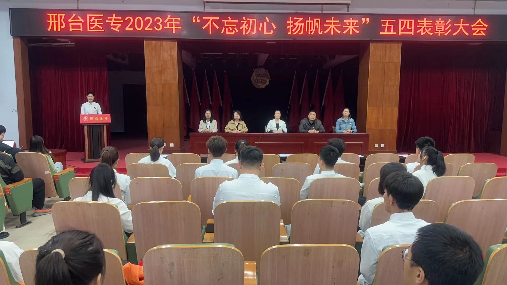 5月4日下午,万象城官网在学术报告厅隆重举行“五四”表彰大会。团委副书记杜庆岩、各系团总支书记以及学生代表共计300余人参加。