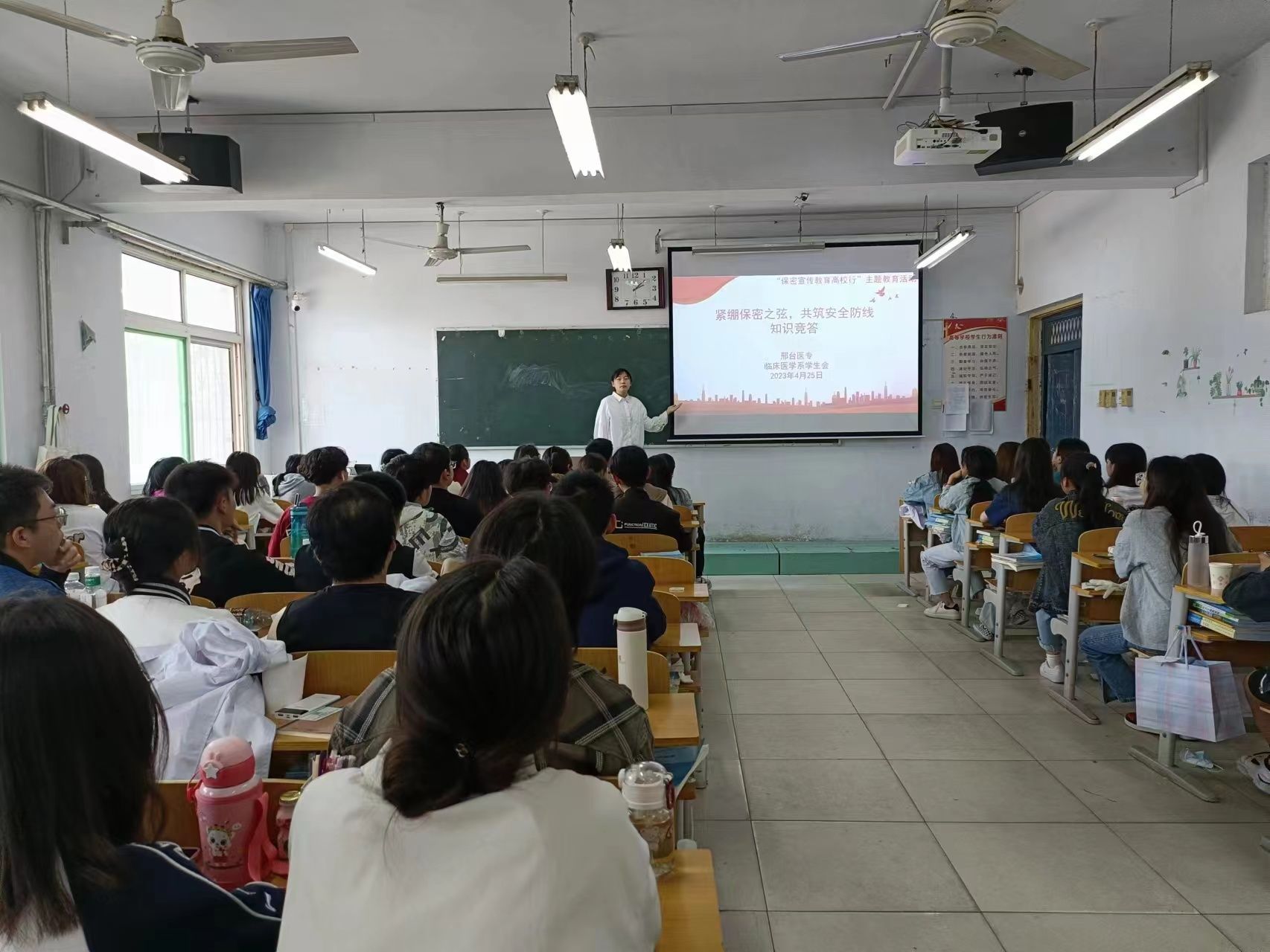 学生会以微信小程序答题的形式开展了“保密伴我行,护航新时代”知识竞赛,各级团组织开展了“紧绷保密之弦,共筑安全防线”宣传教育、“树立保密意识,筑牢保密防线”征文比赛、“国家保密宣传教育高校行”主题讲座等活动。