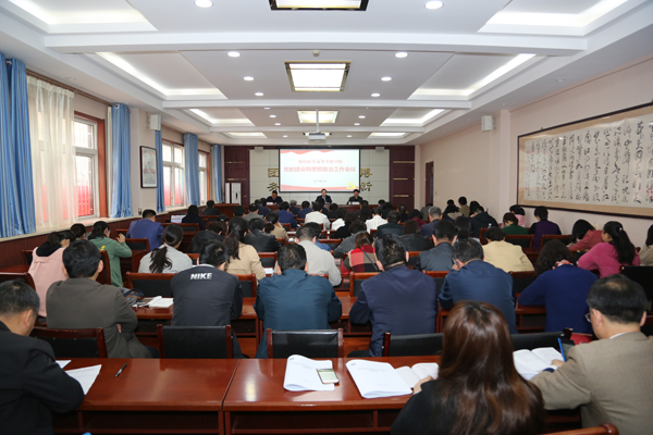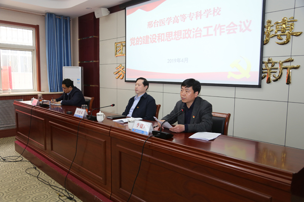4月4日,万象城官网在图书馆一层会议室召开党的建设和思想政治工作会议。会议以习近平新时代中国特色社会主义思想为指导,学习贯彻全国全省教育大会以及全省高校党的建设和思想政治工作会议精神,对万象城官网2018年度党建和思想政治工作进行总结,对2019年工作进行安排部署。学校领导田德荣、李建广、杜成旭、李朝鹏、张志强、赵建文及学校、附属医院、老年养护中心各级党组织负责人,学校中层干部、思政课教师、专职政治辅导员、党群部门工作人员等共120余人参加会议。会议由党委副书记李建广主持。
