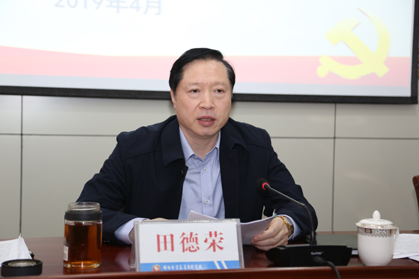 田德荣书记强调,2019年是新中国成立70周年,是全面建成小康社会、实现第一个百年奋斗目标的关键之年,是深入贯彻落实全国全省教育大会精神的开局之年。全校各级党组织要以习近平新时代中国特色社会主义思想为指导,深入贯彻落实习近平总书记关于教育工作的重要论述和全国、全省教育大会精神,坚持以党的政治建设为统领,落实立德树人根本任务,着力抓好党组织建设、教师队伍建设、阵地建设和学生社团管理,扎实推进党的建设和思想政治工作制度化、规范化、常态化,牢牢守住维护学校稳定、防范化解重大风险底线,压实责任,狠抓落实,为学校事业的改革发展提供坚强政治、思想和组织保证。