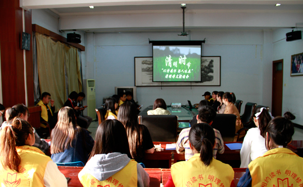 清明前夕,为感悟国学经典,过好传统节日,弘扬传统文化,打造书香校园,4月3日,图书馆于二楼会议室举办了“以诗感怀,思人咏春”清明诗文朗诵活动,图书馆老师和读书社学生42人参加了此次活动。