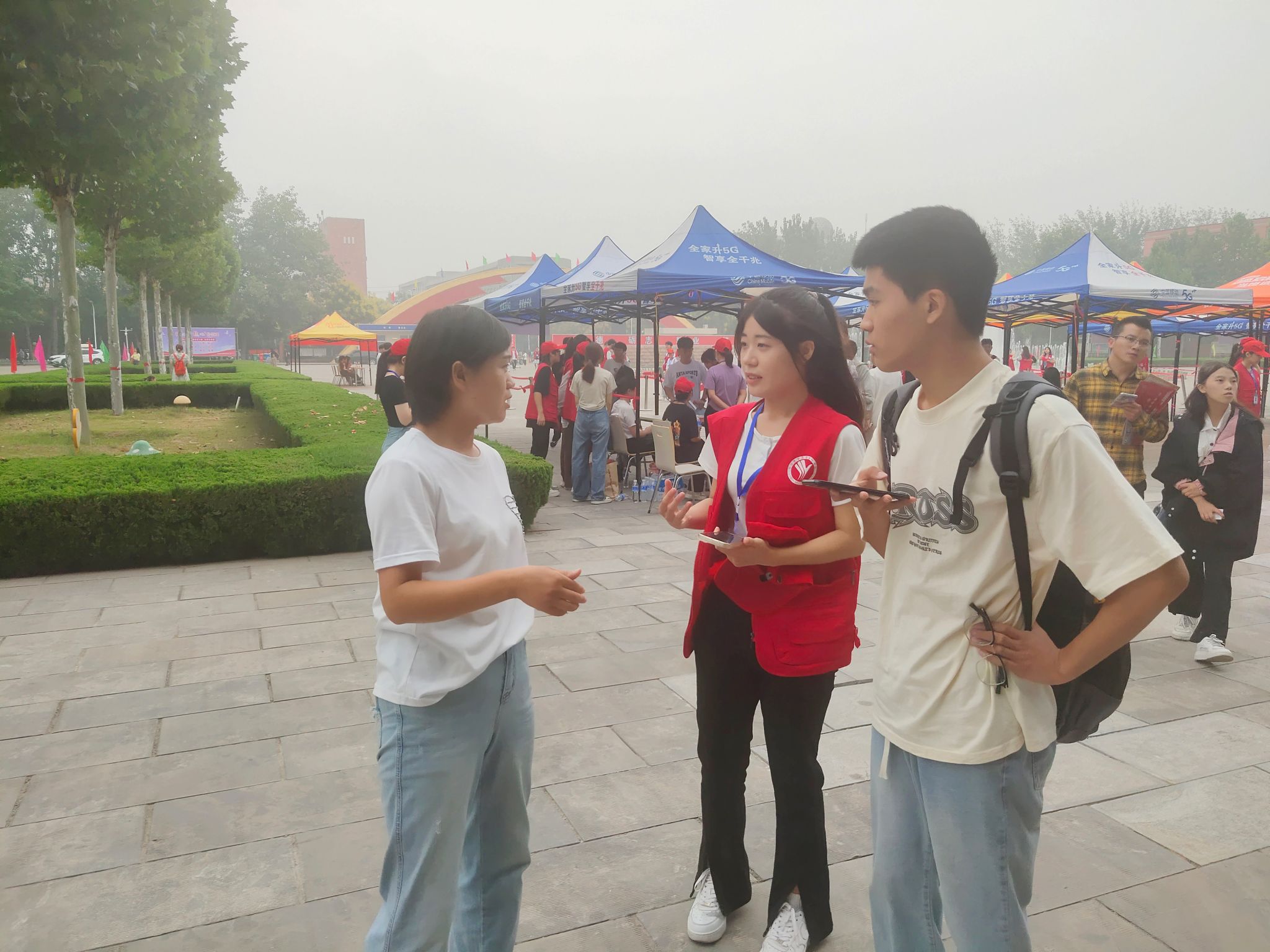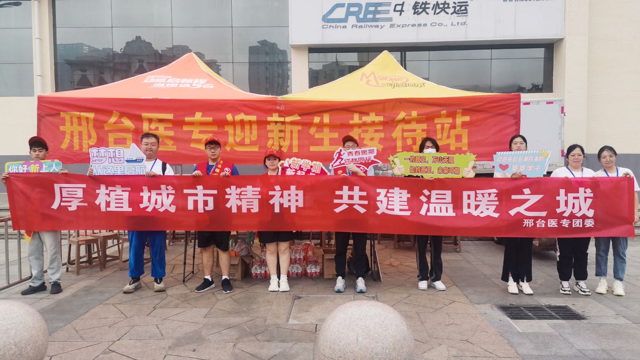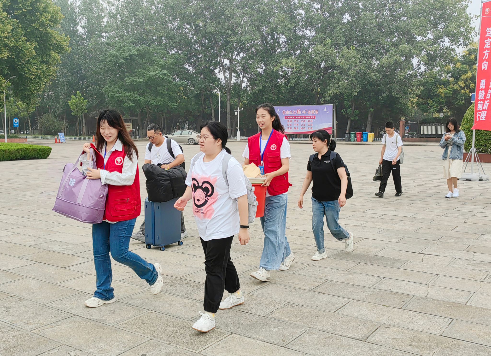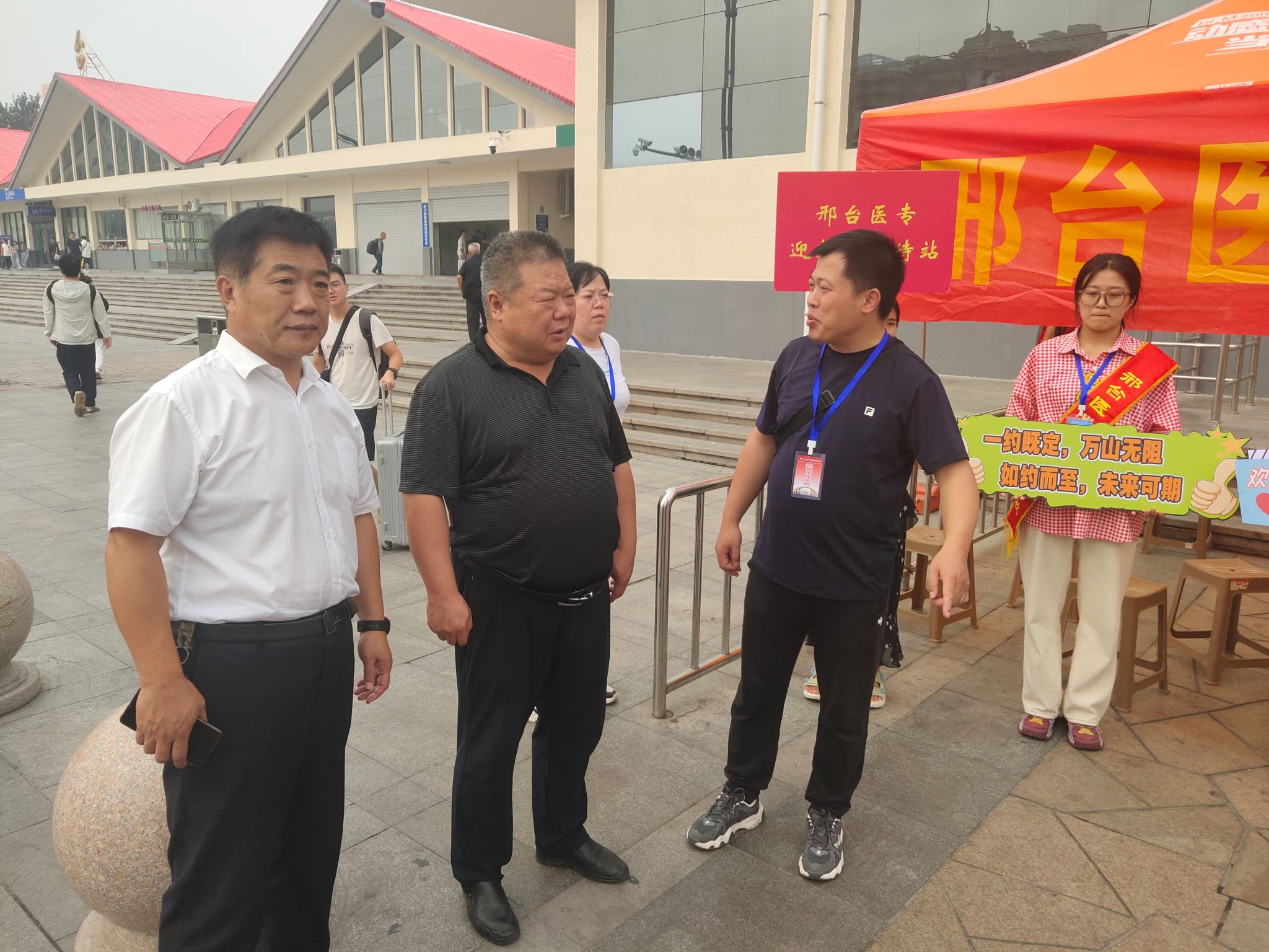 师生志愿者团队一大早就来到邢台东站、邢台站等接站点全天待命,为新生报到提供点对点保障。校园内,志愿者们主动帮助新生拿行李,为送行的家长提供咨询引导,忙碌的身影是阳光下最靓丽的风景线。