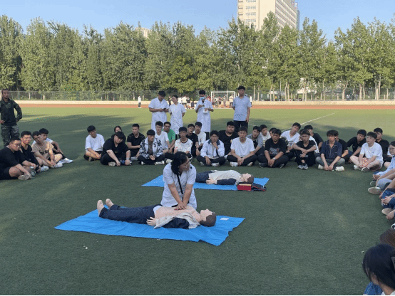 19日,同学们齐聚操场,对心肺复苏术(CPR)、自动体外除颤器(AED)的使用、海姆利克急救法和外伤急救处理(如扭伤、伤口清洁及包扎处理)等内容进行了模拟练习,在老师的指导下,大家纷纷上手实践,学习效果得到进一步巩固。