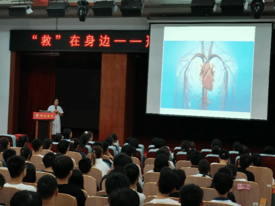 活动开始后,同学们首先观看了急救案例视频。随后,由国家级救护培训师、外科教研室李晓红老师就心肺复苏、AED使用及海姆利克急救法的机理、操作要领及注意事项等进行了通俗易懂的讲解。在2022、2023年河北省临床技能大赛中获奖的杨洋、单飞焱、师天浩三位同学,分别对心肺复苏、“海姆利克急救法”的具体操作流程进行了完整的示范,生动地还原了真实的救护现场。互动环节,同学们踊跃参加,指导老师们现场指导规范操作。