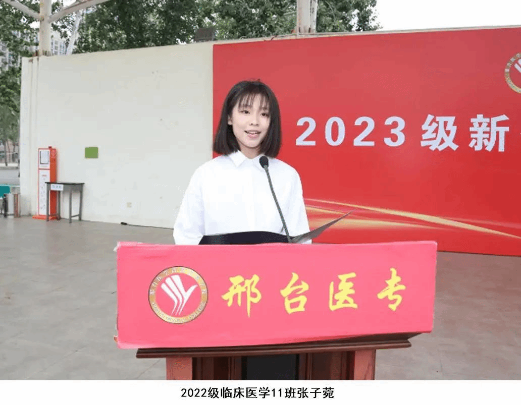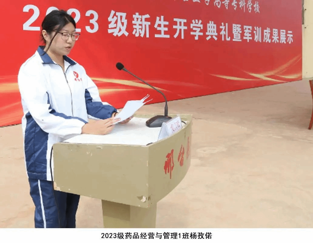 2023级药品经营与管理1班杨孜偌和2023级中医学7班邢云凤作为新生代表发言。她们表示,时序轮替中,始终不变的是追梦者的身影;历史坐标上,始终清晰的是奋斗者的足迹。今后将发扬“团结、拼博、务实、创新”的医专精神,秉承“厚德、博学、合作、创新”的学风,练就仁心医术;坚持同心、同德、同行,积极进取、追求卓越,成就无限可能,让青春在邢台医专的校园里绽放出最灿烂的光彩。