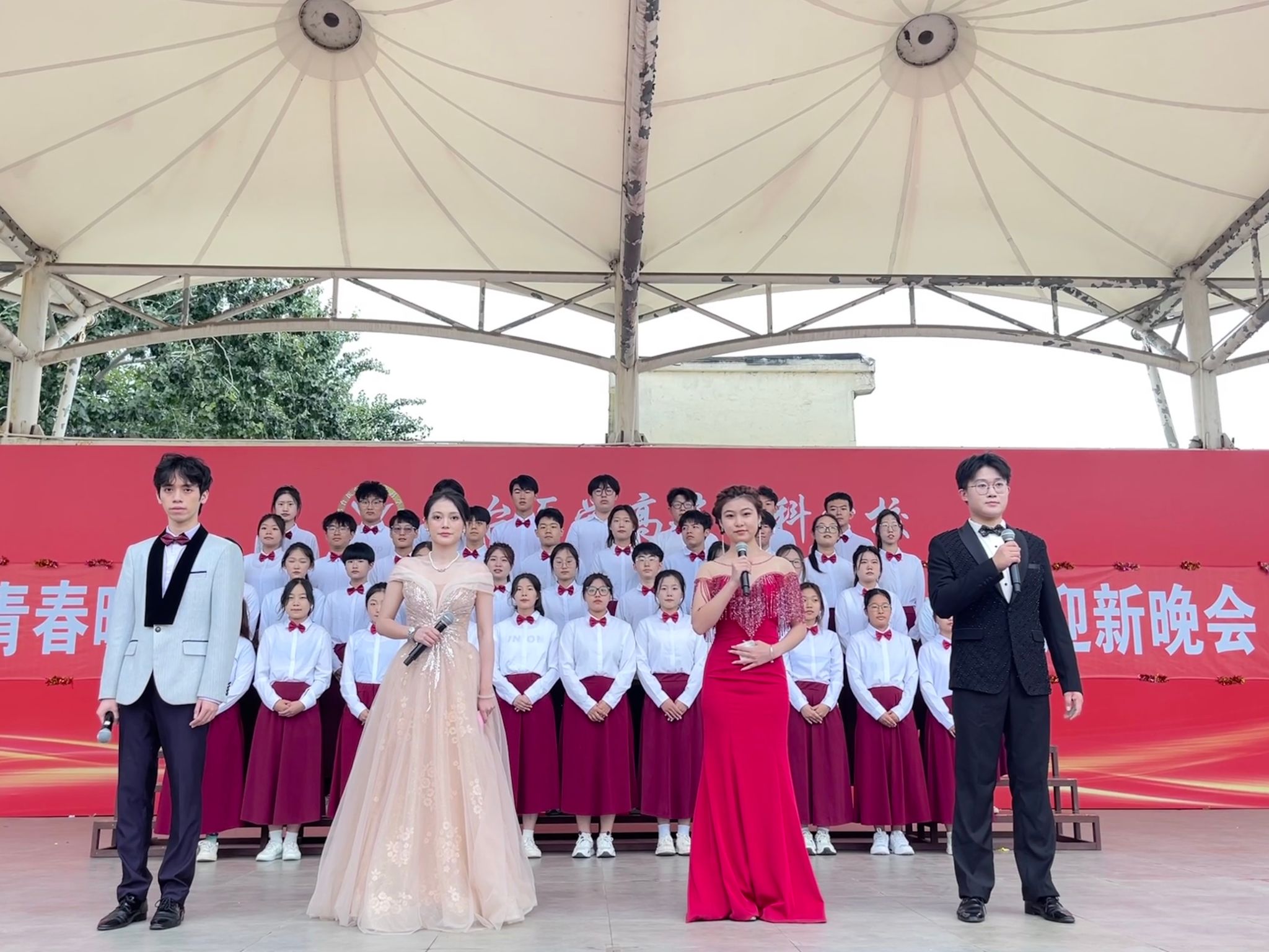 晚会在口腔医学系大合唱《光亮》中拉开序幕,2022级中医6班孙士淼同学表演的二胡《战马奔腾》将师生穿越到战马奔腾的草原;2023级普口5班庞依婷同学带来的拉丁舞《Cheap Thrills》展示了柔美与力量的完美融合;2023级普口12班库尔班尼萨·吾买尔同学、2023级普口13班马依拉·努尔丁同学表演的歌伴舞《欢乐的跳吧》舞出了民族团结一家亲的美好愿望……