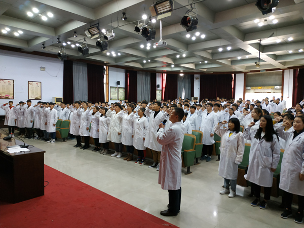 为引导2018级新生更好的融入大学生活,树立新的奋斗目标,10月25日,临床医学系在学术报告厅举行新生入学教育大会暨医学生宣誓仪式。系党总支书记蒲爽、副书记张晶娜,副主任刘庆文、白志峰,2018级全体辅导员及280名新生代表参加了大会。