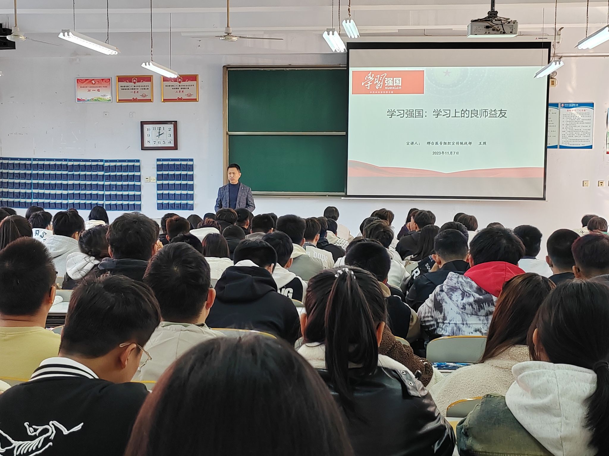 为进一步加强“学习强国”学习平台推广和使用,营造良好的学习氛围,11月7日至8日,学校“学习强国”宣讲团深入各系班级开展了以“日学不辍 强国有我”为主题的5场宣讲活动,各班学生代表共800余人参加。