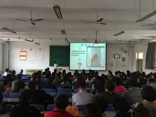 首先,药学系药学教研室刘灿仿老师选取生药学课程中的一个教学单元《人参》为大家做示范教学。刘老师有着多年丰富的教学经验,并多次在学校教师课堂教学质量评估中获一等奖,她运用生动幽默的教学语言,结合精美的多媒体课件,采用对比教学法将人参的来源、市场行情、商品类型及性状鉴定的方法阐释得清晰明了、活泼有趣。整个教学过程理论联系实践,环环相扣、重点突出、引人入胜。