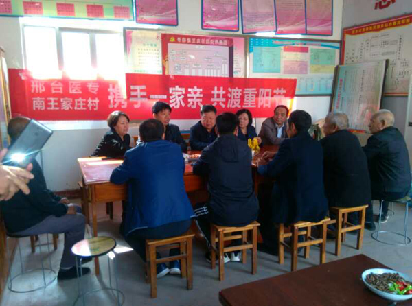 郑校长和村干部、村民代表、驻村工作队员进行了座谈交流。在听完学校驻村工作队队长魏双平工作情况汇报后,郑校长表示,脱贫攻坚是一项重大的政治任务,学校党委高度重视,努力做好各项帮扶和服务工作;驻村扶贫工作队要提高站位,突出精准,对照指标,综合发力,充分发挥和利用好学校优势,紧密结合南王家庄村实际,抓实产业扶贫,以特色的产业项目加快脱贫攻坚,带领老百姓逐步过上好日子。郑校长在与老人的交谈中说:老人是社会的宝贵财富,是构建和谐社会的重要力量,全村老人为国家、集体和家庭奋斗了一辈子、奉献了一辈子、劳苦了一辈子,经济社会的发展,凝聚着老同志的汗水和辛劳。关心关注老年人,也是学校帮扶工作内容之一,学校会尽己所能提供支持和帮助,为老年人拥有一个幸福、快乐、祥和的晚年生活出一份力。郑校长祝福所有老年人节日愉快,生活幸福,健康长寿,笑口常开!参加座谈的老人们很是感动,对学校的关心和照顾表示感谢。