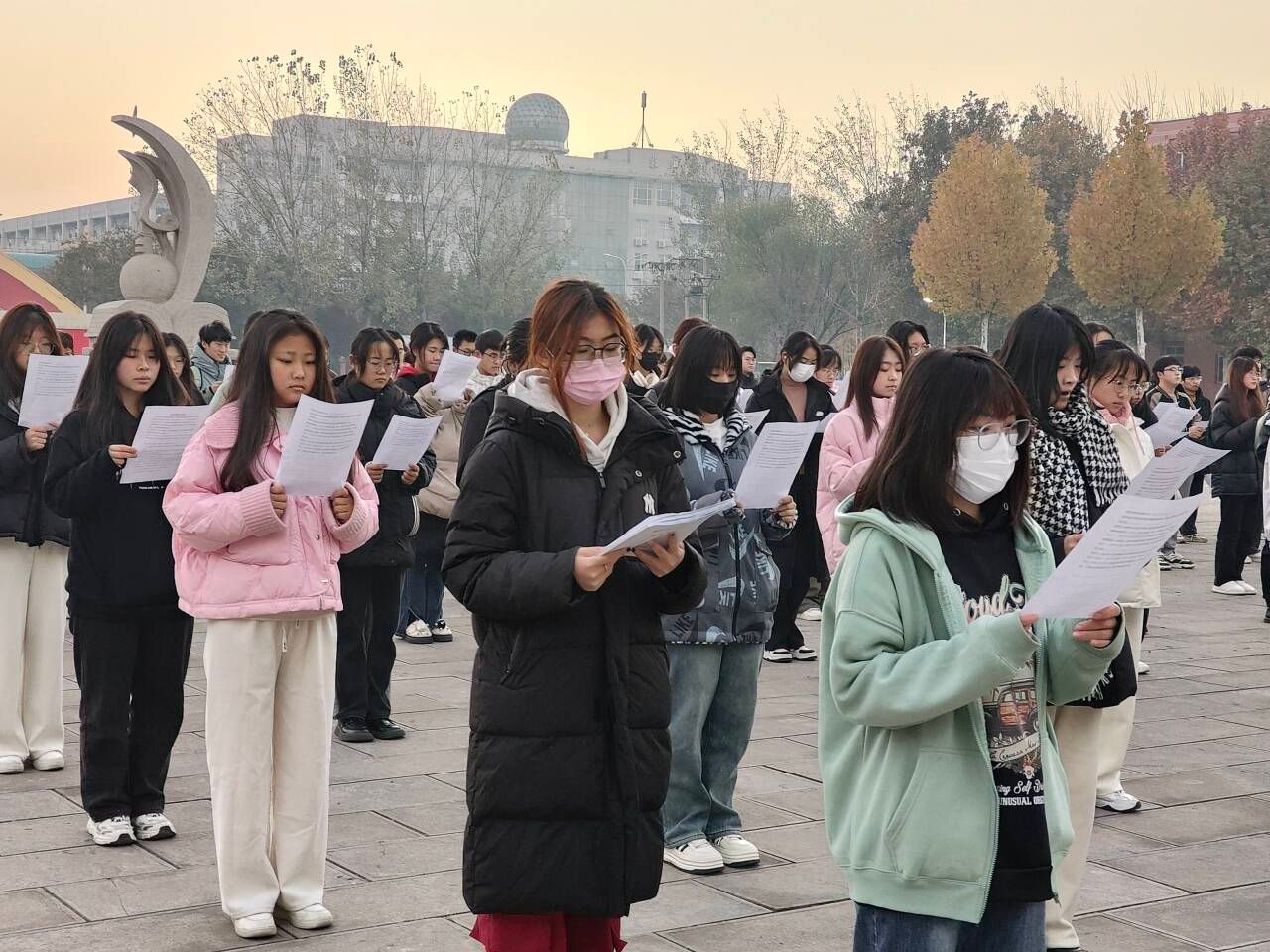 为了弘扬法治精神,增强青年学生的法律意识,11月27日上午,学校大学生社团联合会在图书馆前开展了宪法晨读活动,共计180余人参加。